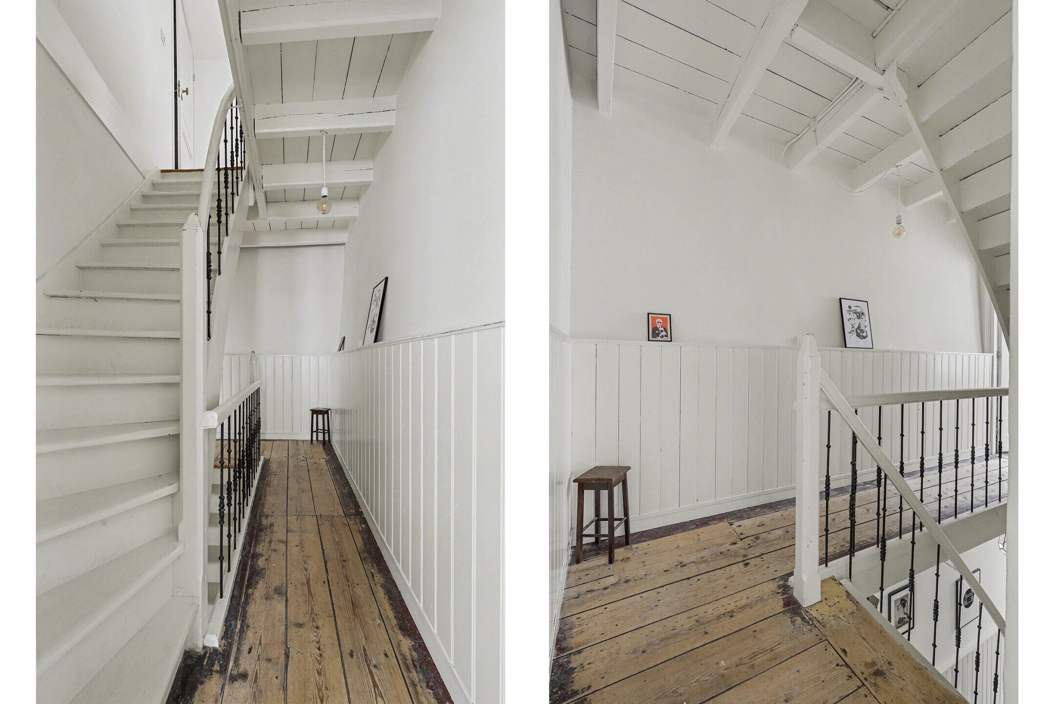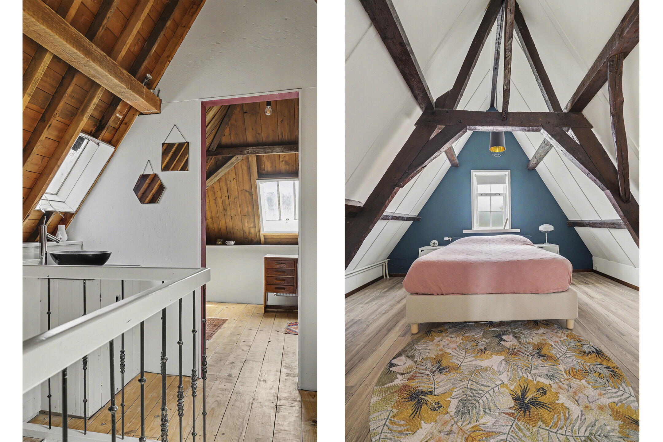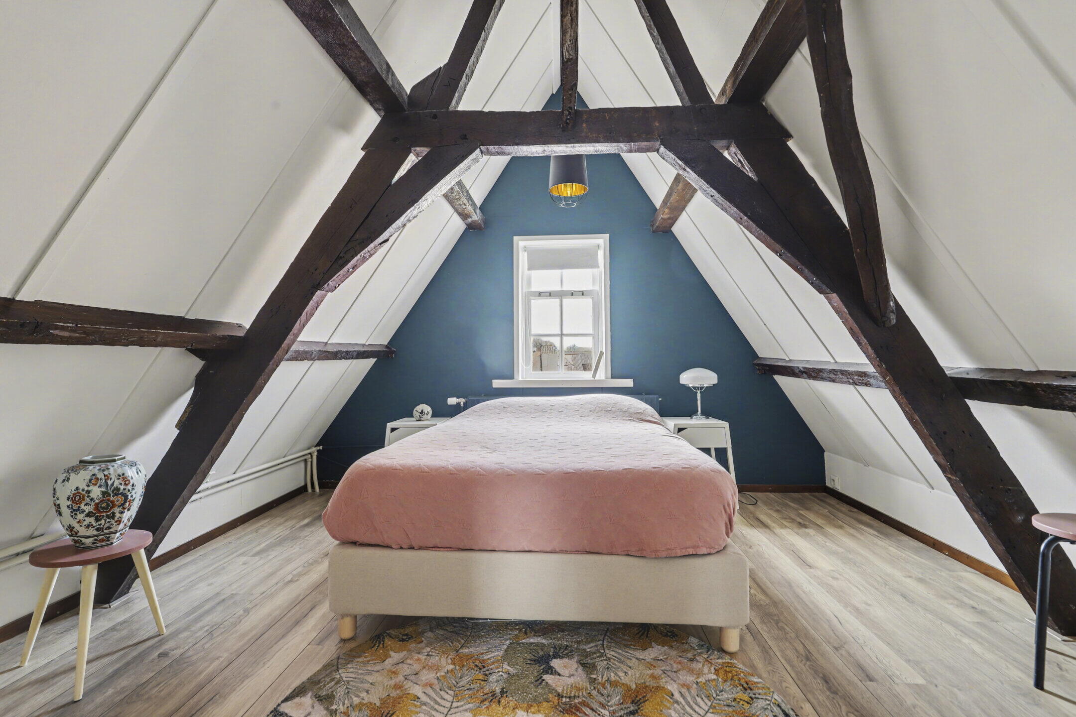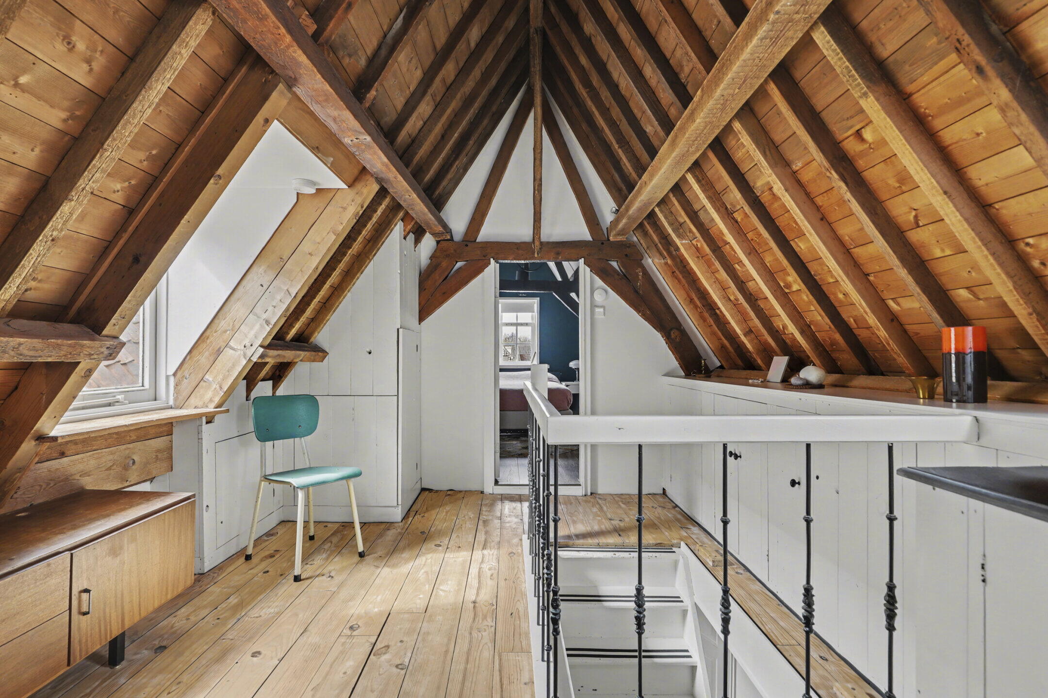 Derde verdieping: grote overloop met cv ruimte, dakraam en toegang tot twee slaapkamers. Buitengewoon fraaie spanten en dakconstructie in het zicht gehouden waardoor een fijnen sfeer gecreëerd wordt.