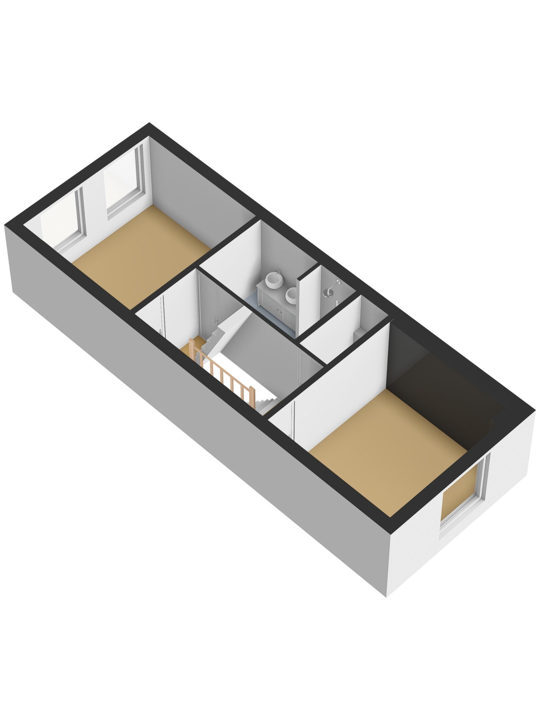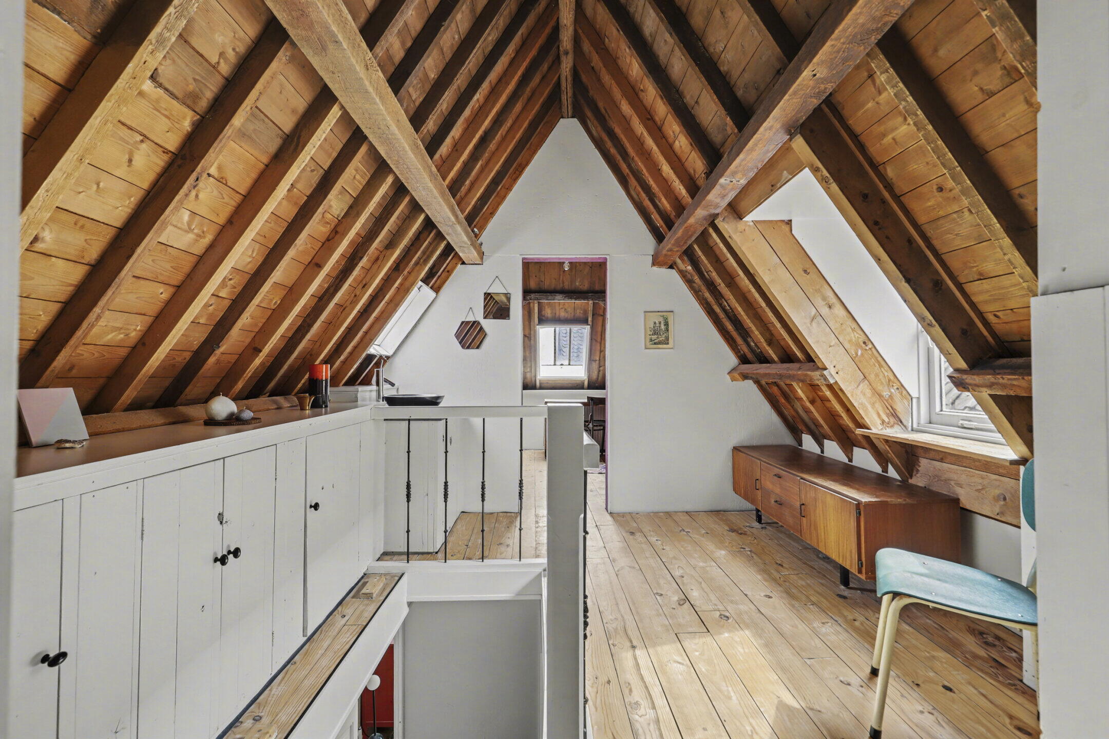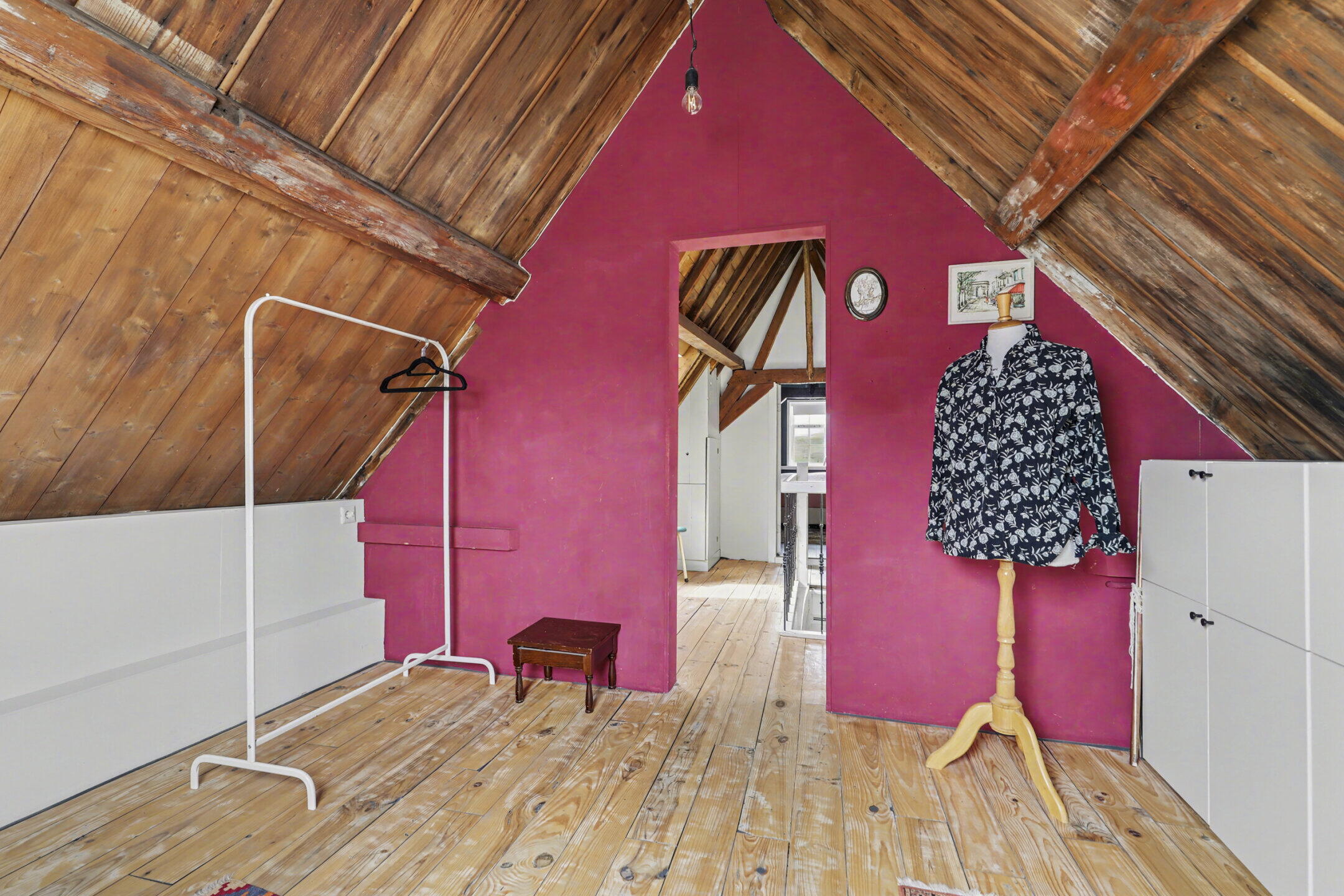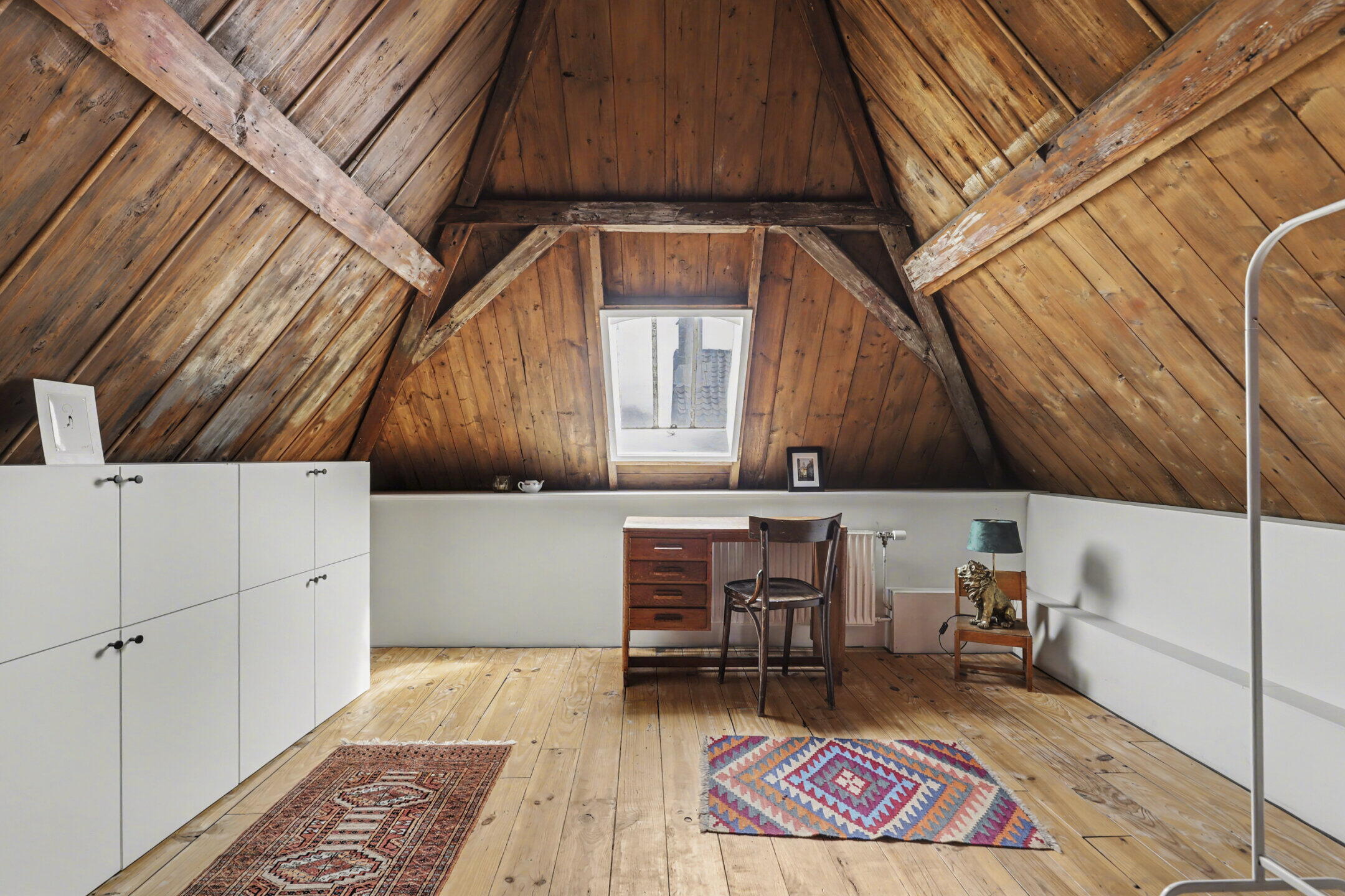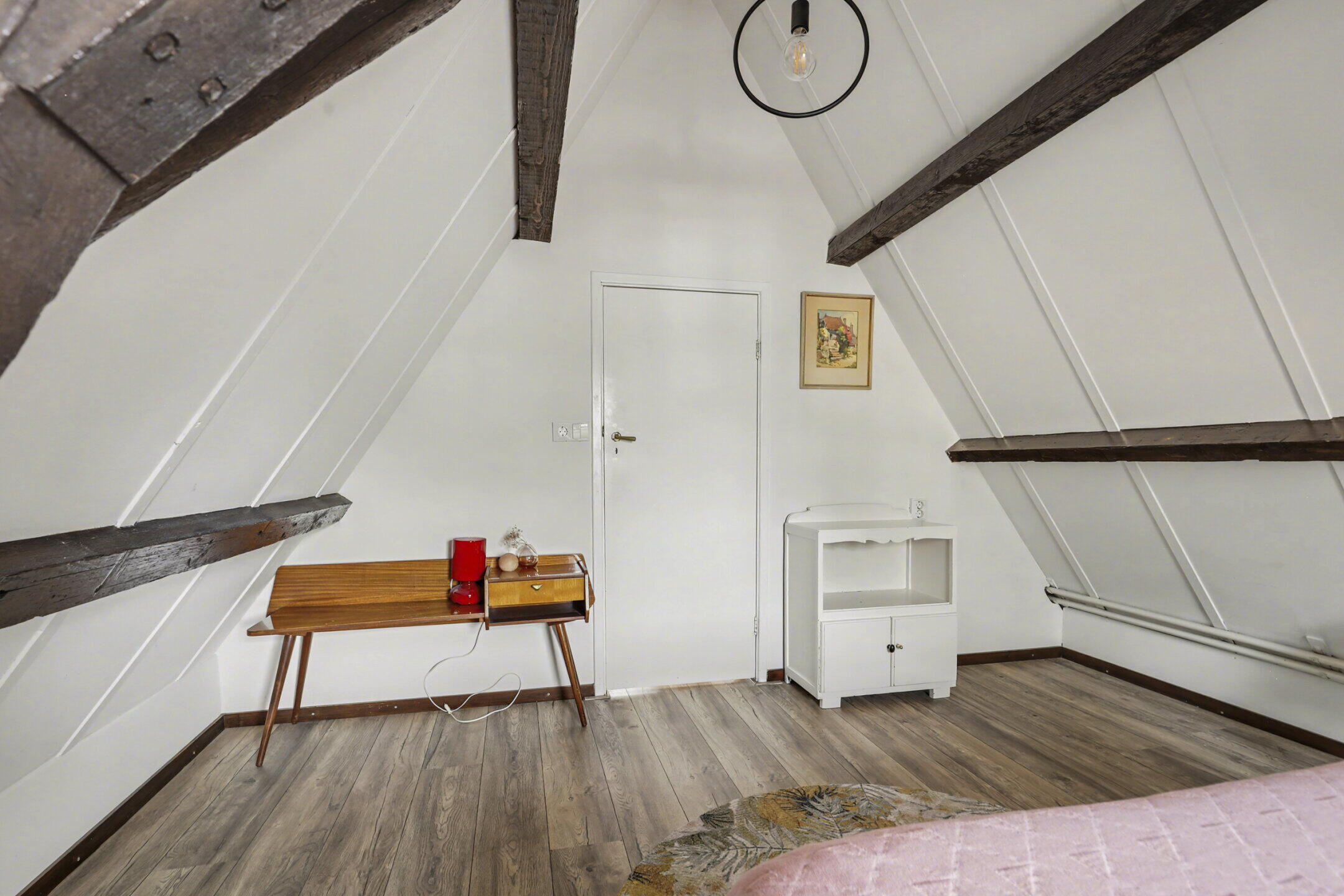 Derde verdieping: grote overloop met cv ruimte, dakraam en toegang tot twee slaapkamers. Buitengewoon fraaie spanten en dakconstructie in het zicht gehouden waardoor een fijnen sfeer gecreëerd wordt.