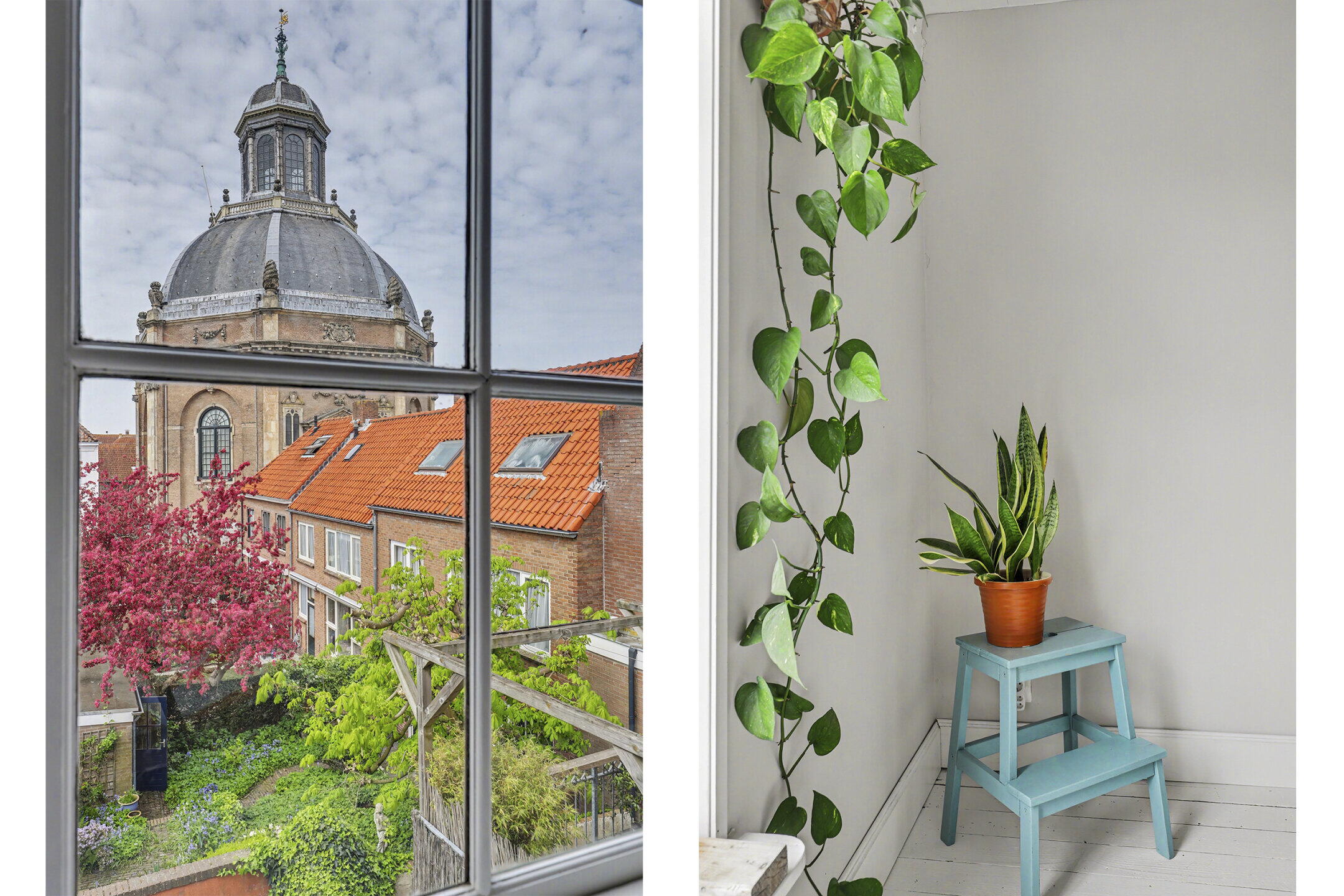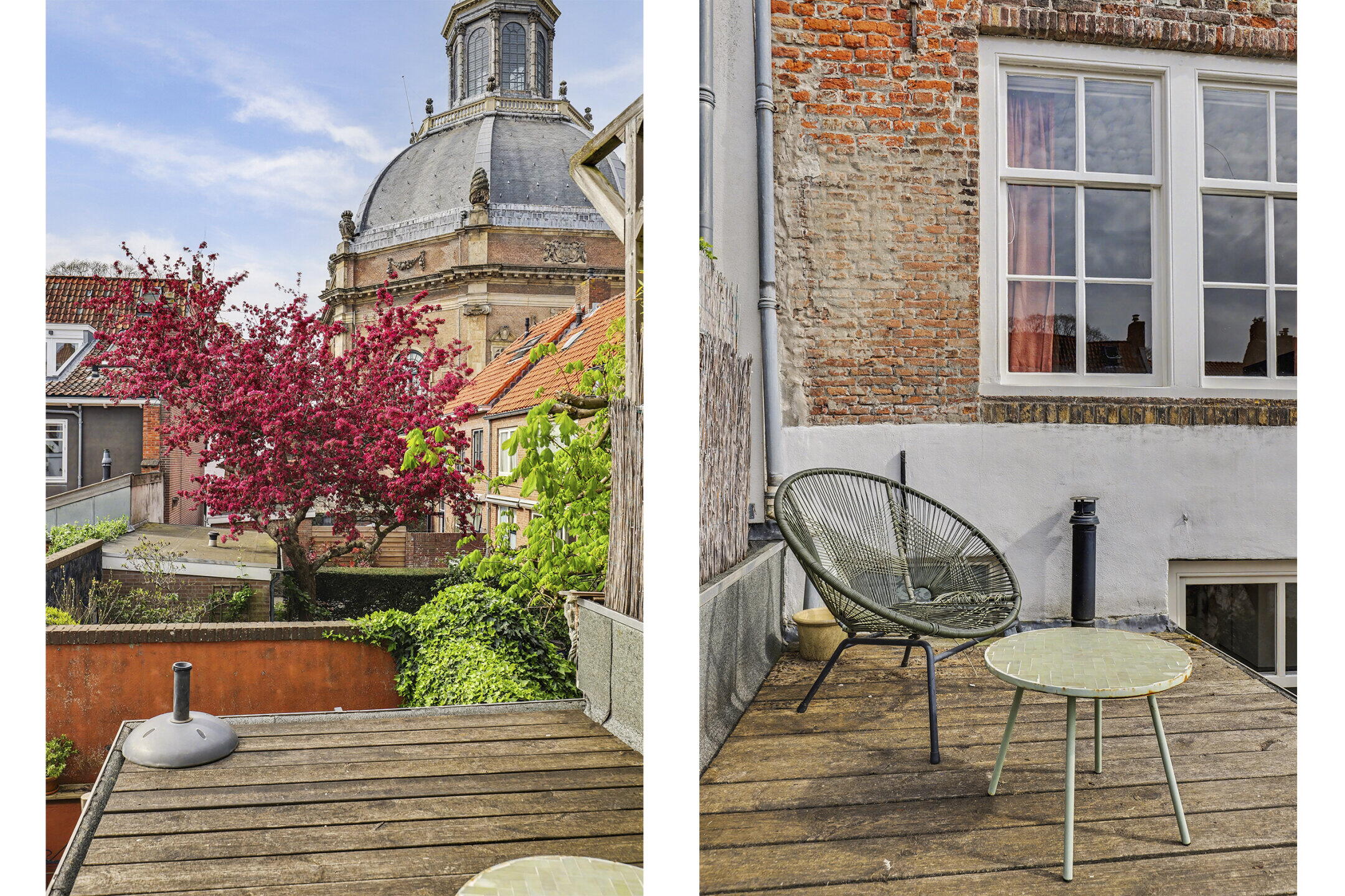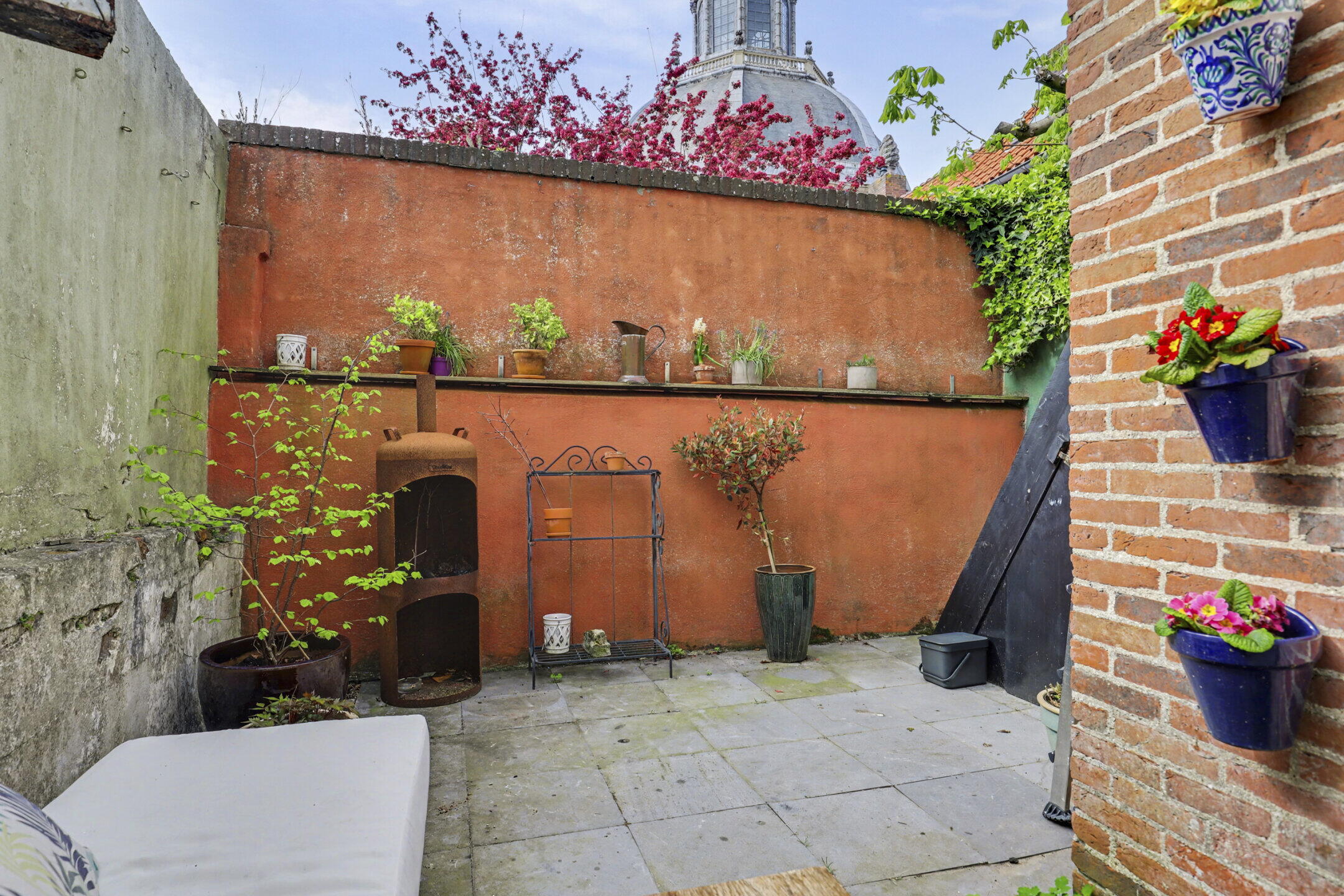 Besloten stadstuin, zonnig en met een fenomenaal zicht op de 16e-eeuwse Oostkerk.