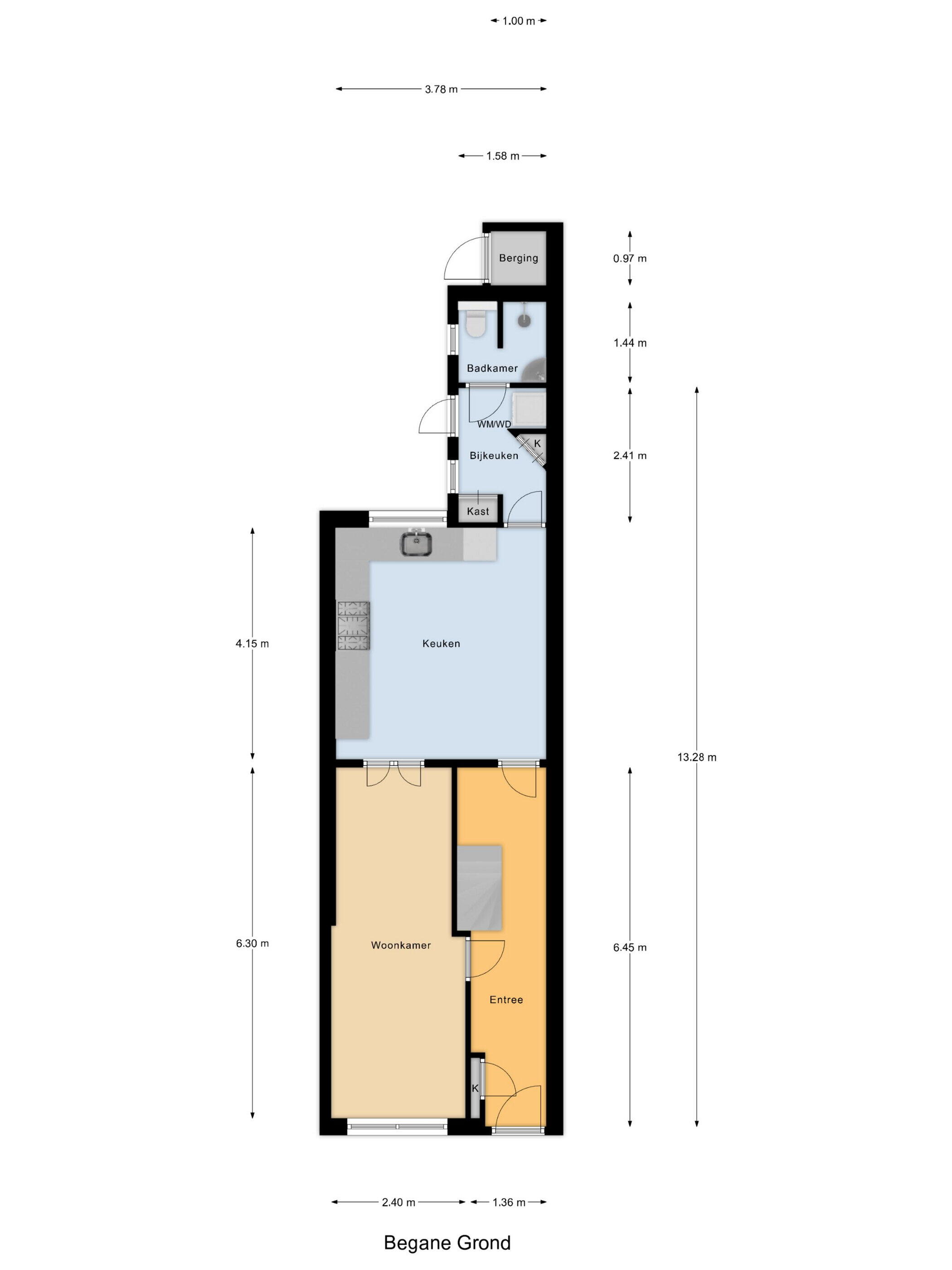 - 27 m² (6.5 meter diep en 4.2 meter breed)